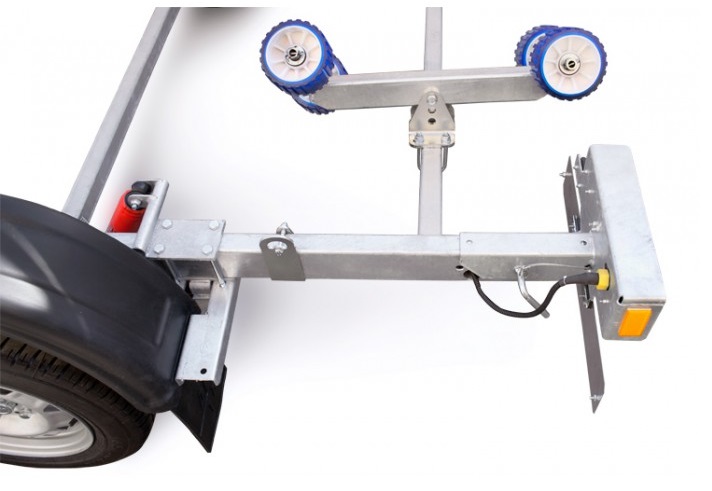 ● Роликовые опоры обеспечивают удобный спуск судна на воду и его подъём на сложных, необорудованных участках берега, где нет возможности заезда прицепа на достаточную глубину. Две передние опоры с двойными роликовыми модулями могут быть установлены в любой точке поперечины рамы, имеют регулируемый угол наклона и регулируемую высоту. Это позволяет настроить их в оптимальное положение под обводы корпуса перевозимого судна. Две задние опоры с четырьмя роликами могут быть установлены в любой точке поперечины рамы, их оцинкованный кронштейн имеет саморегулируемый угол наклона, а каждая пара роликов самостоятельно подстраивается под обводы судна. Такая конструкция облегчает центрирование и обеспечивает удобную поддержку судна и при его загрузке и выгрузке под большим углом.