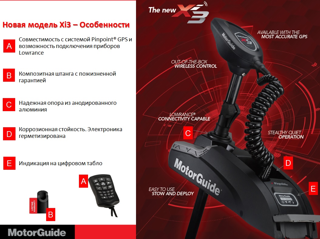 MotorGuide Xi3 это самый тихий и простой в эксплуатации троллинговый мотор в своем классе. Беспроводное управление и безопасная система