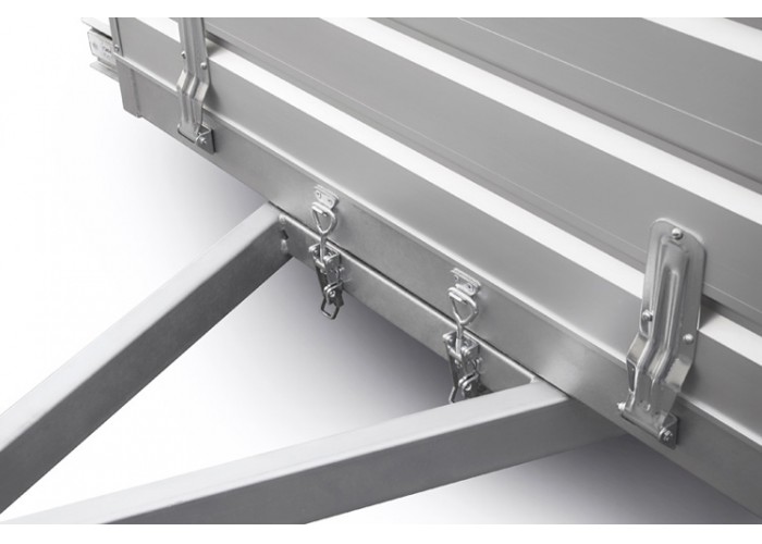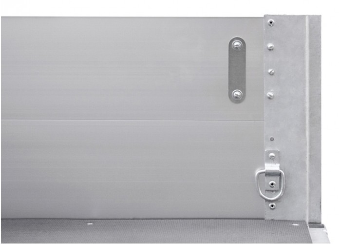 ● Борта из анодированного алюминия устойчивы к коррозии и не подвержены ржавчине. Они выполнены из замкнутого профиля с рёбрами жёсткости по внешней стороне, благодаря чему имеют повышенную устойчивость к динамическим и ударным нагрузкам. Стойки бортов оборудованы петлями крепления груза.