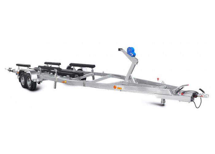 ● Передвижной носовой упор оборудован лебёдкой, имеет регулируемую высоту, угол наклона. Он может быть отрегулирован и установлен в наиболее удобном положении для модели перевозимого судна. Лебёдка облегчает погрузку судна на прицеп и страхует его при спуске на воду.